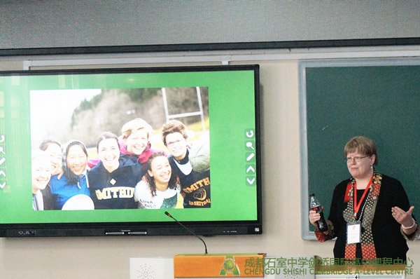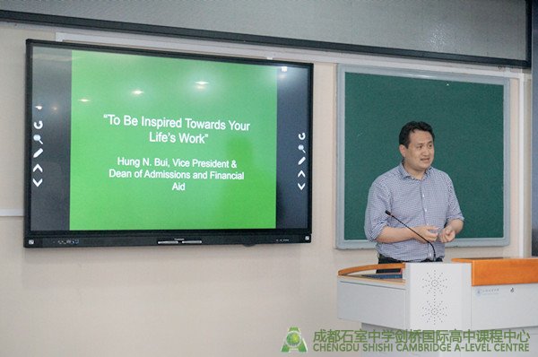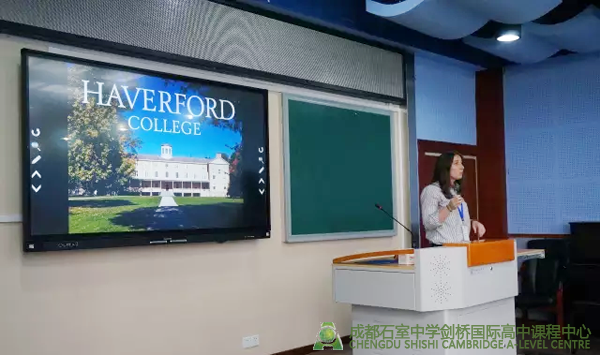 昨天下午2点,美国大学来访团如期来到石室剑桥课程中心,分别来自5所大学的5名招生官和高一高二年级的学生在逸夫楼小阶梯教室展开了一场热闹的见面会。
