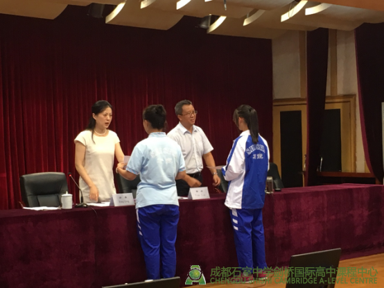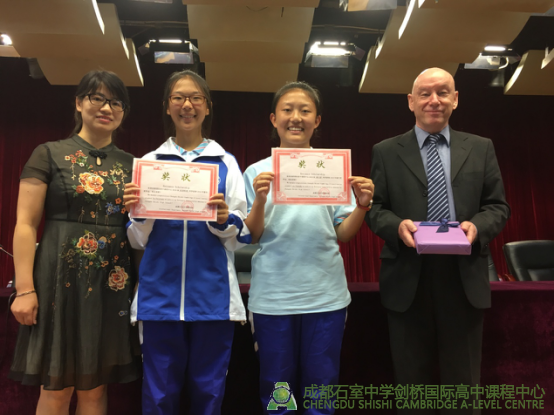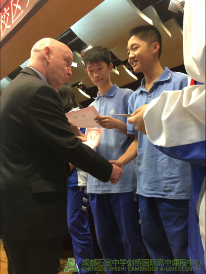 在过去一年里,石室剑桥的学子们在2016年全球统考中取得了优异的成绩,Andrew为他们颁发奖状。