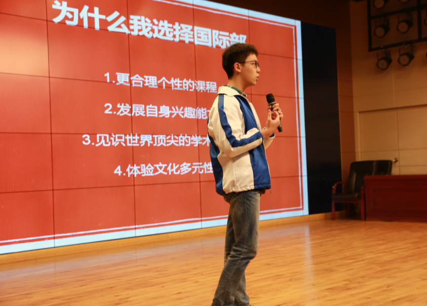 擅长理工科和数学的邓鸿鉴同学去年暑假申请到了斯坦福暑校,他在会上更多介绍了在石室剑桥国际高中的学校生活。他说选择国际部的原因有4点:1.更合理个性的课程;2.发展自身兴趣能力;3.见识世界顶尖的学术水平;4.体验文化多元化。他强调了石室剑桥A-level课程中心对课外活动的重视,他有三分之一的时间花在课外活动中,比如辩论赛,这些课外活动很好的锻炼了他的思辨和组织能力。