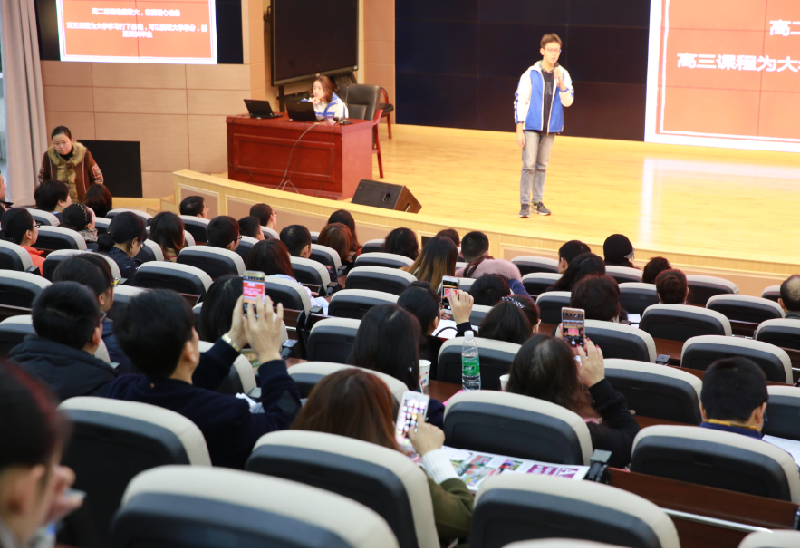 开放日首先是由石室剑桥国际高中的在读学生向家长简单介绍校园生活和组成部分。值得注意的是这个环节的所有执行工作,包括主持人等等都由同学们自己负责,所有环节都有序推进,体现了石室剑桥国际高中同学们极强的活动组织能力。参加了剑桥大学面试的,雅思8分获得者杨一帆同学是这个介绍会的主持人,她自信又充满活力,用得体恰当的言语控制着介绍会的节奏。