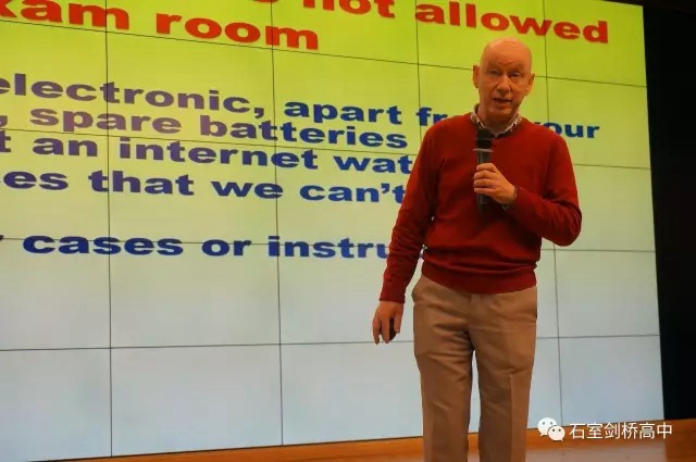 尽管已是老生常谈了,还是要提醒同学们注意考试中的各类问题。每年CIE考试前,学术校长Derham先生都会召开中心集会,为三个年级的同学讲了各种考试注意事项。