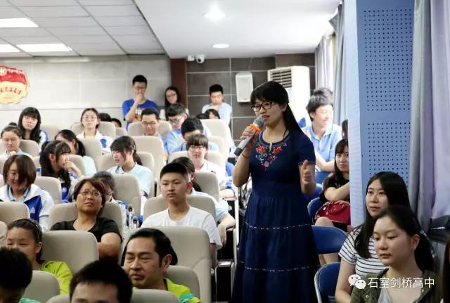 交流时间,石室剑桥的学弟学妹们真的不要太踊跃,各种问题层出不穷:大学遇到最困难的事?大学怎么进行时间管理?大学里怎么进行学科选择?是否有融入外国人的圈子,怎么做到的?如何进行美国转学的?高中和大学课外活动选择如何做的?……最后,就连石室中学国际部主任马主任也忍不住站起来问了问题。