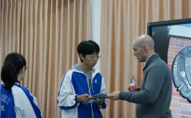 图片中是哪位大学的招生官在剑桥课程中心呢?