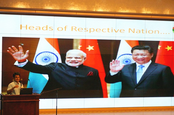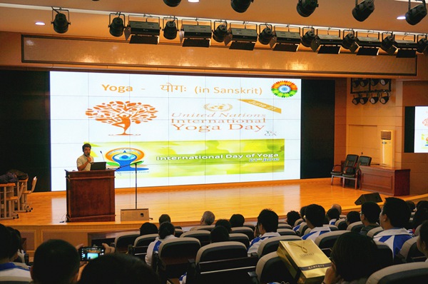 Mr.Mishra是这学期新加入剑桥课程中心的生物老师,这位来自印度的老师教学经验丰富,深受学生喜爱。在这次中心集会上,热情满满的Mr.Mishra给师生们介绍了自己祖国印度的一些风土人情。进行正式的印度问候之后,Mr.Mishra开始了他的介绍,他谈到了印度的地理位置、人口、瑜伽、美食、体育、电影、以及在印度的中国文化等。