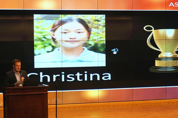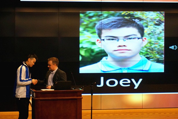 每次颁奖都堪比奥斯卡的“English Awards”也如期举行。Mr. Mc Eleney还是一贯的幽默风趣,从提名到颁奖,总能调动起大家的胃口和热情。此次英语之星分别由高一年级Jennifer、高二年级Christina、高三年级Joey获得,Mr. Mc Eleney为他们颁发了获奖证书。