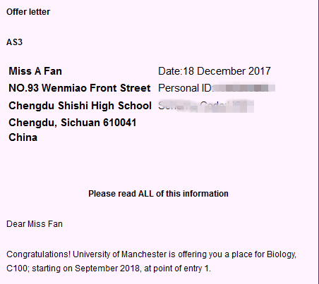 曼彻斯特大学3封