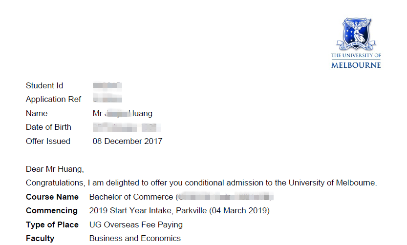 墨尔本大学3封