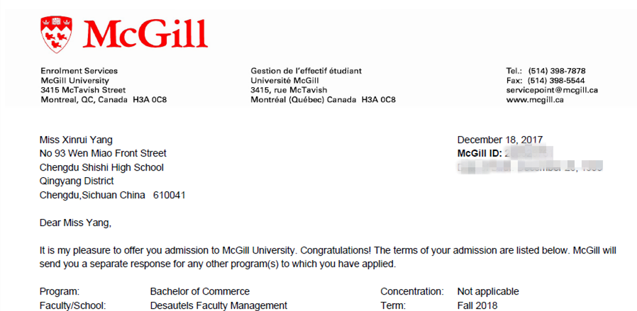 大麦吉尔大学1封