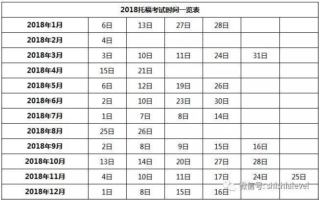 2018年托福考试时间表