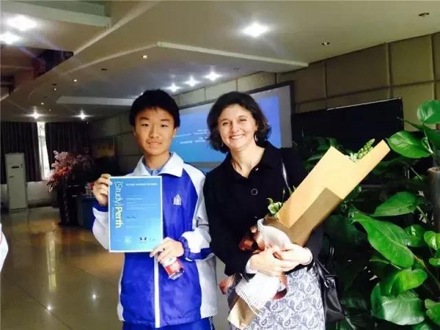 高一入学时,Jerry获得第五届”我与珀斯合个影“一等奖