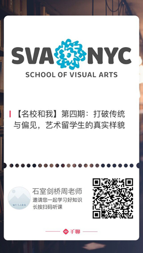 11月6日,上午10:30,第4期“名校和我--打破传统和偏见,艺术留学生的真实样貌”。我们特意邀请到了石室剑桥高中2017届毕业生Abgail Li(纽约视觉艺术学院 动画专业 大二在读)给大家分享她在纽约视觉艺术学院的学习生活及感受。