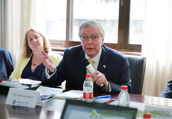上月初,CIE(Cambridge International Examinations)的首席执行官Michael O'Sullivan沙利文先生陪同英国议员团来访石室中学,成都市教育局、外事交流处、石室中学、石室剑桥课程中心各领导人对他们进行了热情接待,双方就中国国际教育领域问题作了交流讨论。