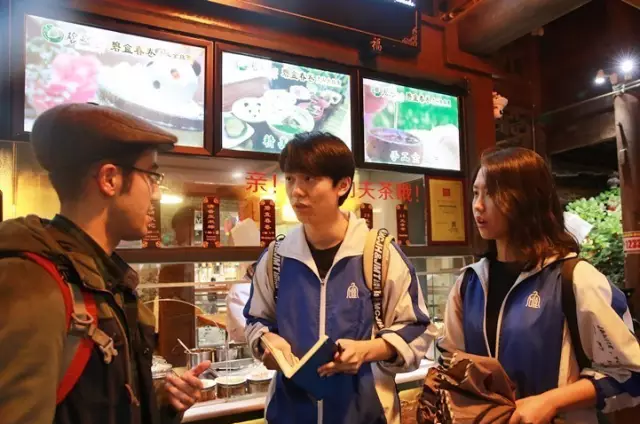调查店家语言能力的一组拜访了锦里不同的礼品店、餐厅和酒吧(小组的成员还不忘在酒吧里慷慨解囊,买走了几瓶米酒)。这一组的任务并不难完成,大家通过询问店内人员的语言水平便获得了信息。“语言水平其实取决于店家的规模,”王昱桦说,“可以说大多数商店,尤其是中型到大型的店家,他们接待外国顾客是没有问题的,并且都配有会说英语的店员。但是在一些规模小一点的店里,我们发现店主在接待外国游客上是有一定困难的。”