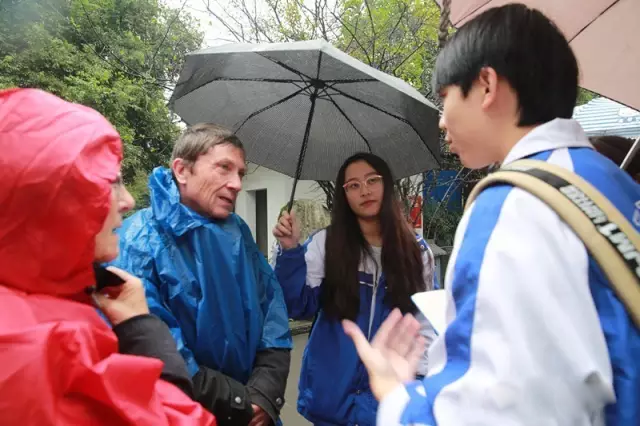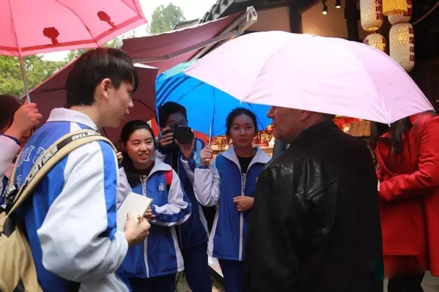 It was the most fun to follow the group asked to spot out foreign tourists and asked them questions. After millions of attempts, thanks to Choca's brave and half-roared 'excuse me, sir', the group was finally able to start its first conversation with a gentleman from Switzerland with his Chinese wife. As we expected, he said that the biggest attraction was every panda-related product and he was impressed by the variety of products made simply based on panda. The next person the group interviewed who had been to Jinli several times already, was more fascinated by the cultural atmosphere. 'I like to watch those performers playing with fire, the show put on the big stage and all the fun stuff here.' He said. What I found really memorable was the conversation with a French couple. With both our students and this middle-aged couple from France speaking not very fluent English, students found out they were into tealeaves sold in Jinli and they would not mind if the price was a bit high. The conversation went incredibly well and was exceedingly heart-warming. We all agreed it was indeed very touching to watch two lovers with wrinkles on their faces holding hands together in a rainy afternoon, clumsily dressed in red and blue raincoats.