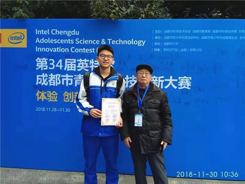 石室中学剑桥国际高中课程中心 高二年级陈俊帆同学 凭参赛作品 室内二氧化碳自动检测置换装置 荣获该赛事 最高奖项--英特尔英才奖。