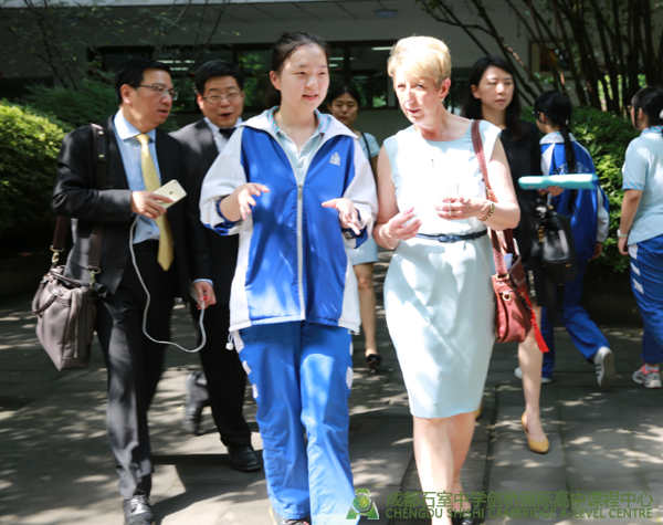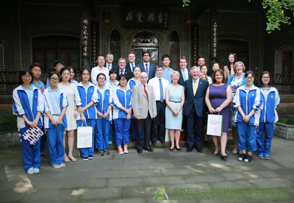 6月2日下午2点,英国议会跨党派中国小组以克莱门特·琼斯阁下(Lord Clement Jones)为领队的代表团一行8人到访成都石室中学。据了解,此次访问是英国剑桥大学考试委员会(CIE)CEO沙利文先生(Mr. O’Sullivan)极力推荐,沙利文先生也陪同访问。教育局王志成副局长、对外交流合作处徐海副处长、石室中学田间校长、校长助理方青、国际部主任倪蓉及石室剑桥课程中心学术校长Andrew Derham等诸位领导到校门口热情迎接。狄邦教育作为石室中学国际课程的合作伙伴,董事长黄缨子、副总裁杨飞也到场欢迎。