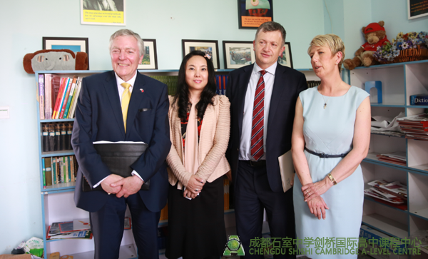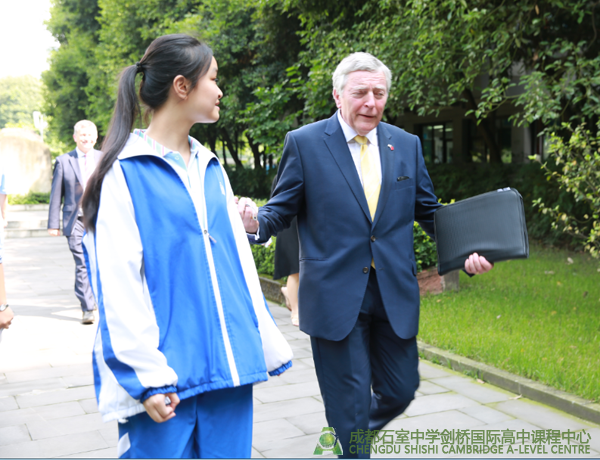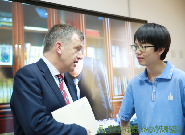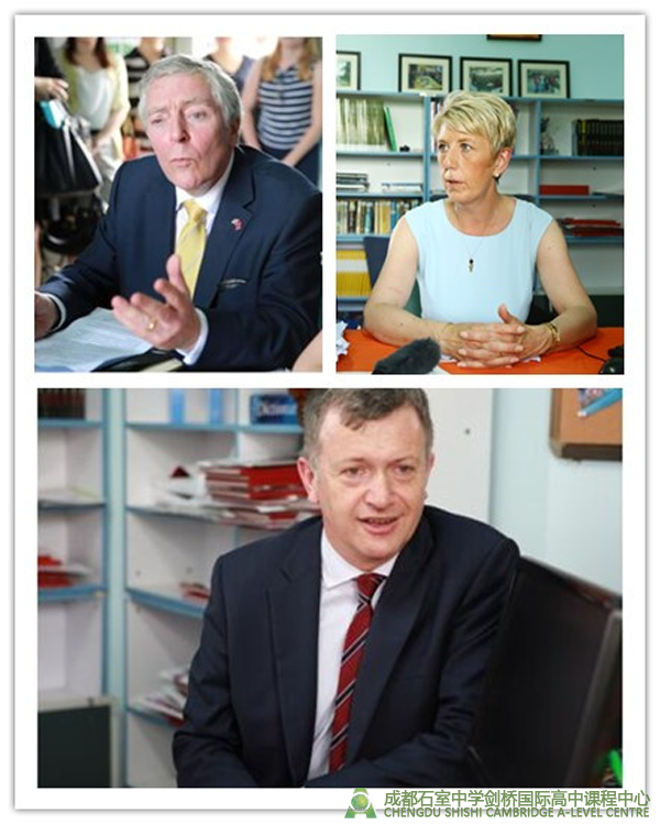 石室剑桥国际高中是成都最早成立的A-Level课程中心,在被问及剑桥大学考试委员会为何在多年前就选择石室中学合作办学,沙利文先生说,“剑桥大学历史很久,但是在成都哪里能找到比剑桥大学历史更悠久的学校,那就是石室中学。但是比起古老历史,更重要的是教育质量,而石室中学无疑也是教学质量一流的学校。”石室剑桥国际高中近年来的办学成果瞩目,沙利文先生表示那不是剑桥大学考试委员会和石室中学的成功,而是学生们的成功。目前为止,石室剑桥国际高中的所有学生都100%进入了世界一流大学深造。沙利文先生说他很高兴看到近年来选择国际课程的中国学生和家长的变化,他们选读国际课程不再只是为了进入世界名牌大学,也是希望孩子受到真正的更全面的国际教育。