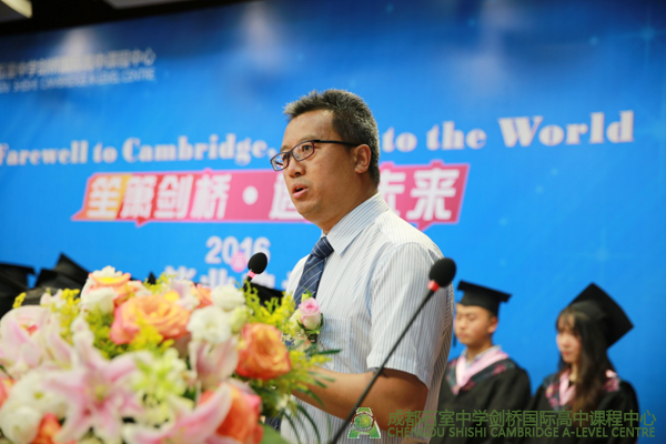 那些沉淀的彩虹似的梦,在三年的努力中一一绽放,石室中学田间校长上台为同学致辞,他为石室剑桥近年来辉煌的成绩感到欣慰,特别是2016届的同学们,35名同学平均每位同学收到3封录取,51.43%的同学被全球前100名大学名校录取,这是石室的骄傲!