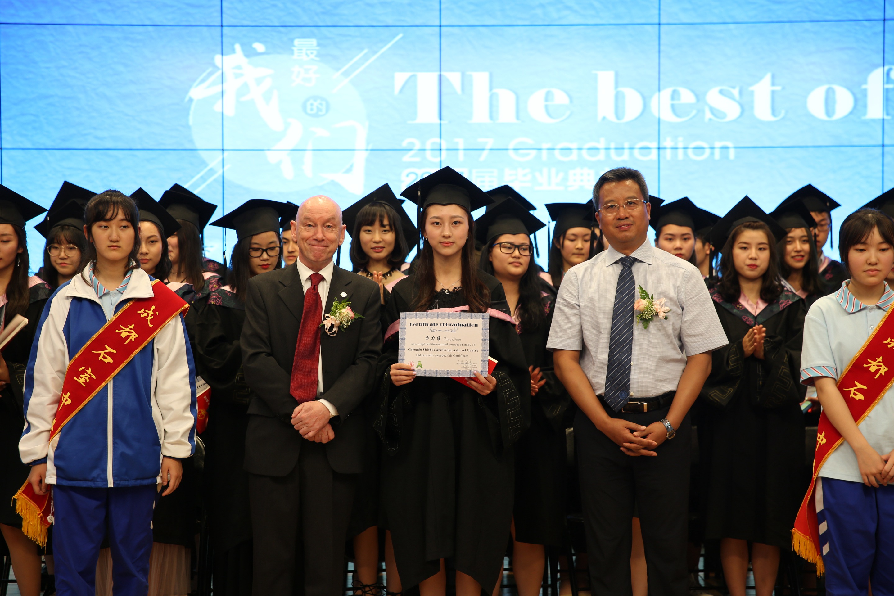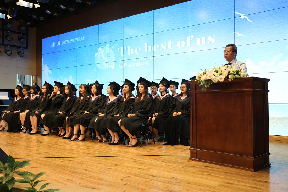 这是石室剑桥的学术校长Andrew Derham先生在毕业典礼上的致辞,同时他表示石室剑桥学生是做好充足留学准备,是在国际教育环境下成长起来的。他们会积极地提问,主动地回答问题并表达观点,学会与老师交流,用英文和其他中国人沟通。懂得欣赏自己同时也能赞赏他人,是能在其他中国学生中成为杰出榜样的。最后他表示了对毕业学子们的祝愿,希望他们大学生活以及将来的人生幸福而有意义。