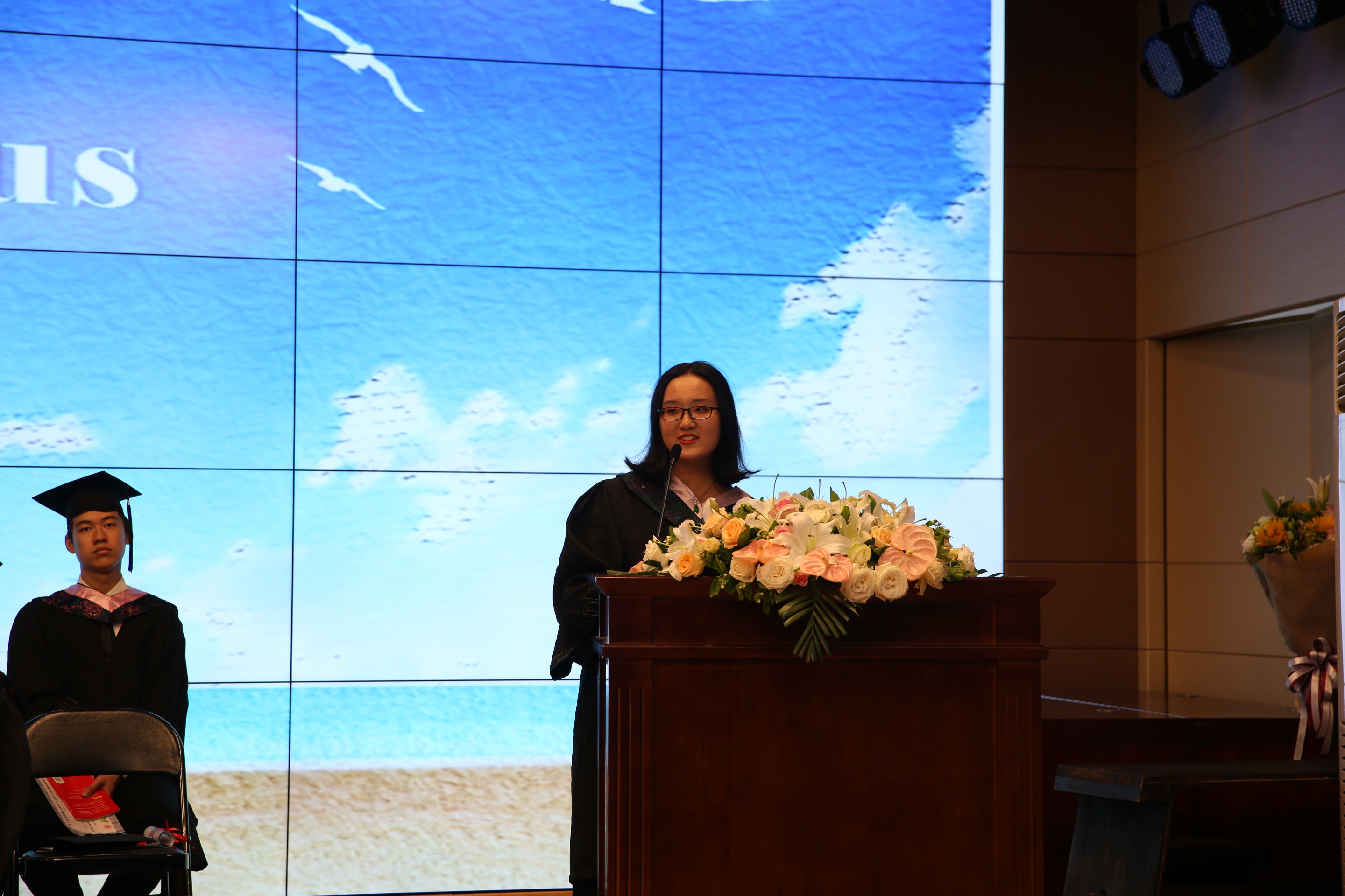 最后石室剑桥课程中心优秀的2017届学生代表李嘉懿同学代表全体毕业生做了发言。