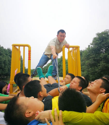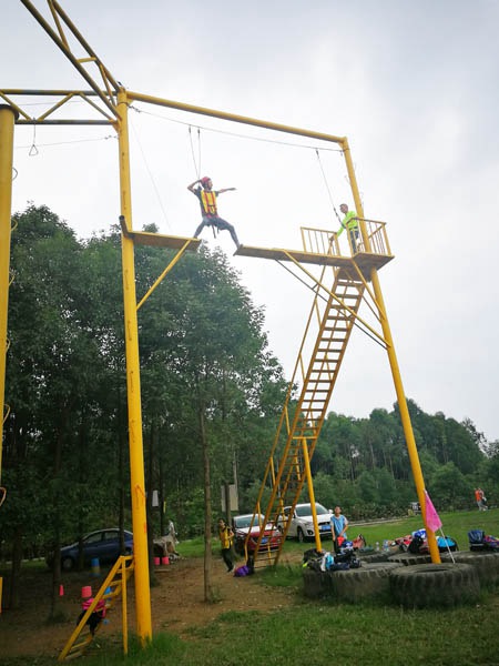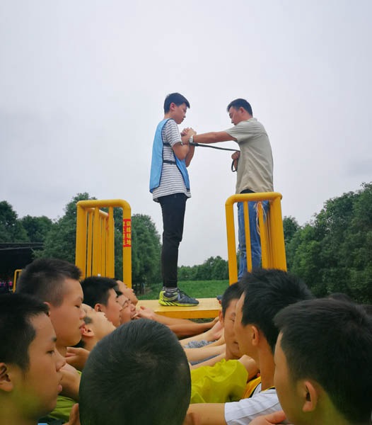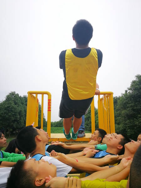 这是一个广为人知的经典拓展项目,每个队员都要从1.6米的平台上笔直的向后倒下,其他队员伸出双手保护他。这个游戏可以培养团体间的高度信任,建立伙伴间的信任及责任感。