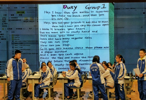 不得不感叹,现在的年轻人真是不得了,学生的潜力真是无限大。两个小组的学生分别采用了改编歌词和喜剧小品——一个用唱一个用演的形式,表达了各自的观点,赢得观众和评委的阵阵喝彩。