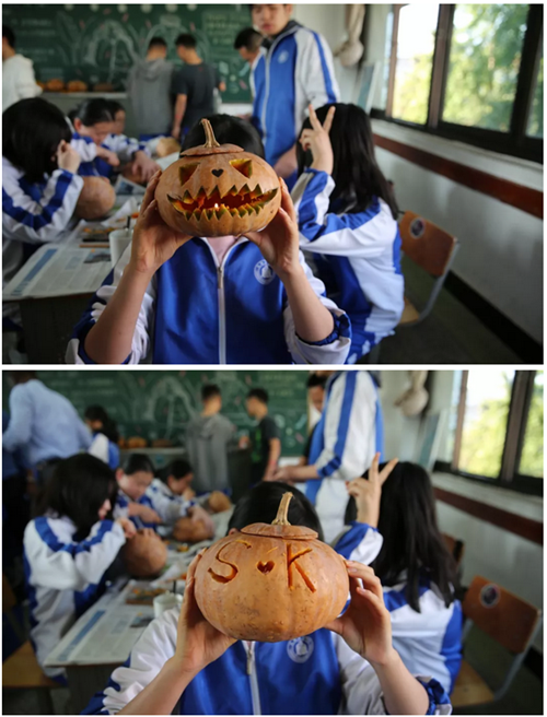 两小时前,石室剑桥高中最后一堂半期考试结束了,师生们随之迎来了放松节目--万圣节主题活动。